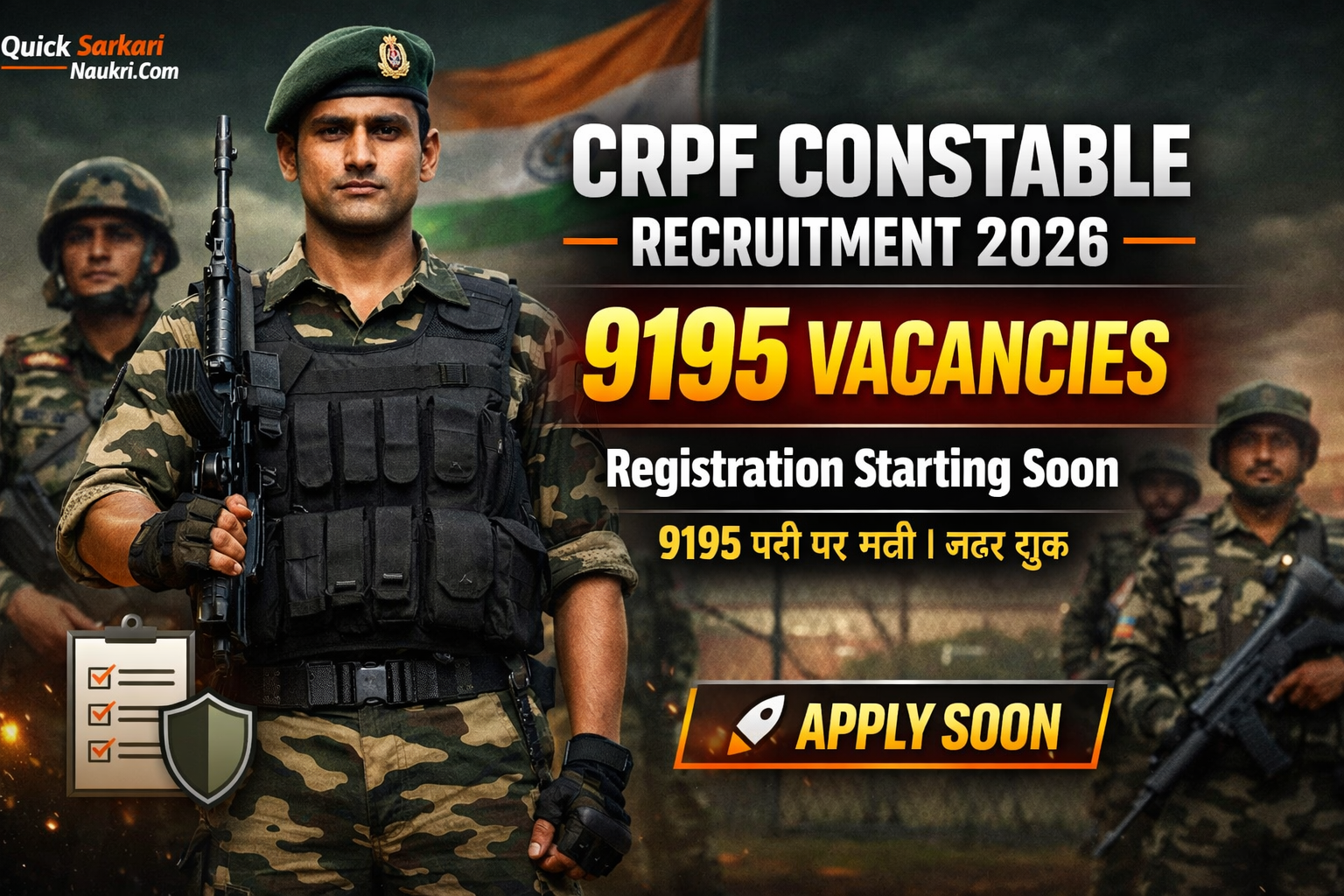 Agar aap soch rahe hain ki aapko government job ki tayari karni hai, toh yeh waqt bahut hi acha hai. Central Reserve Police Force (CRPF) ne announce kiya hai ki wo CRPF Constable Recruitment 2026 ke liye jaldi hi registration shuru karne wale hain. Is recruitment ke through total 9195 vacancies khuli hain. Toh, shuru karte hain is important topic par baat karna!